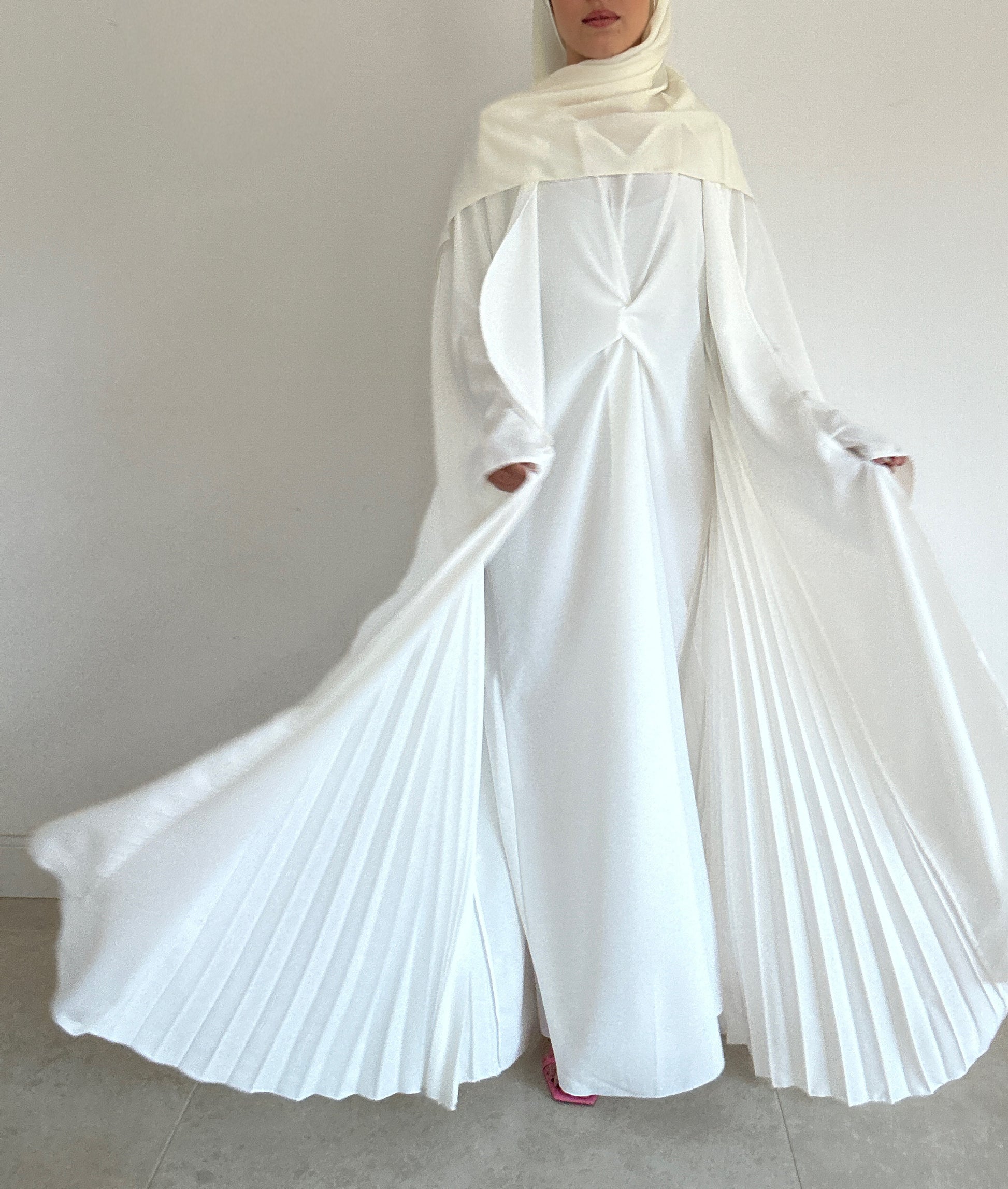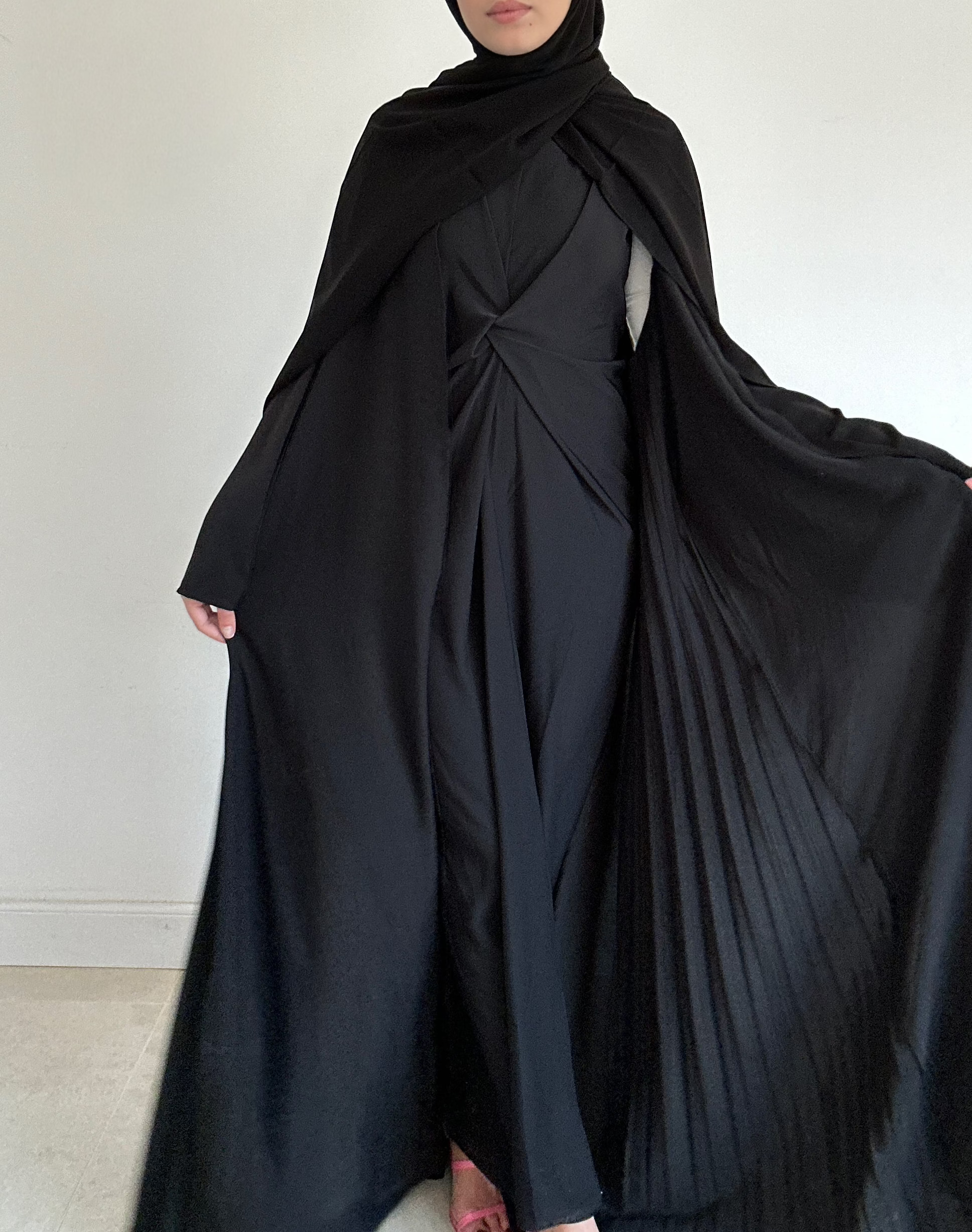 Chic et raffiné, cet ensemble Abaya plissée et robe nouée, est parfait pour les occasions spéciales comme l'Eid.