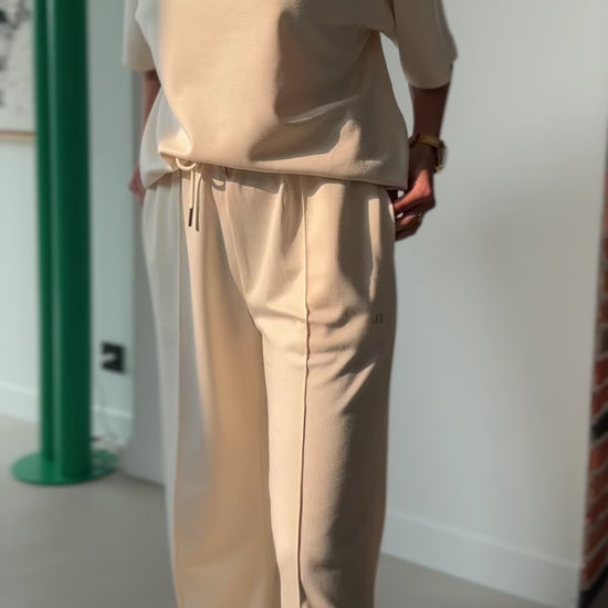 Ensemble jogging crème en maille douce.